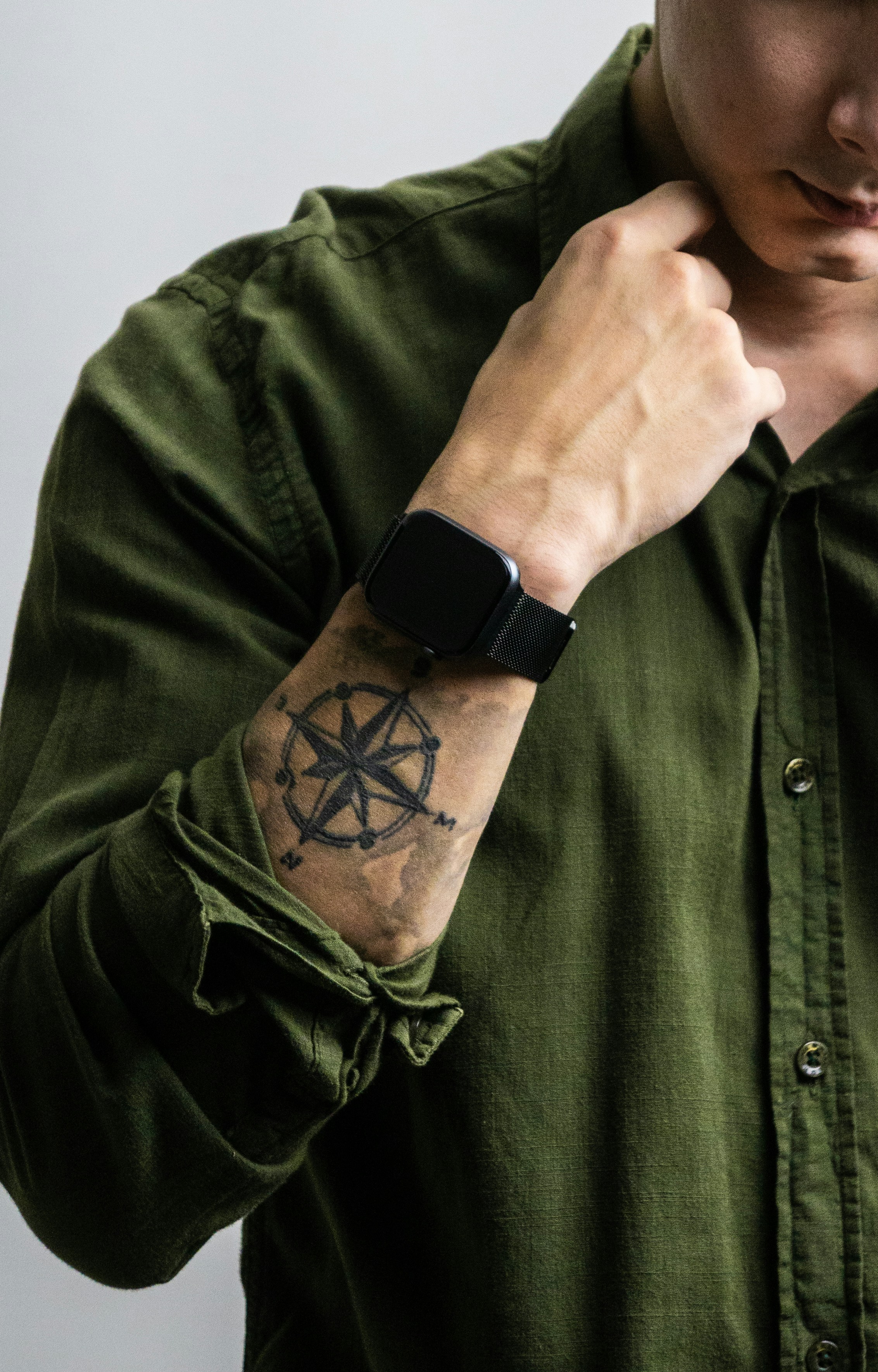When planning simplistic tattoos, think about whether you want your design in black and white, color, as an outline, or even a silhouette.